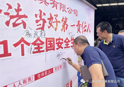 In order to actively respond to the notice issued by the State Council's Work Safety Committee and the Ministry of Emergency Management on launching the 2022 National "Safe Production Month" activities, Jiwen Furniture Company held a launch meeting on June 16, 2022 with the theme of "Comply with the Safety Production Law and Be the First Responsible Person" to create a strong atmosphere of safety management and everyone's responsibility. Nearly 20 managers at the company's supervisory level and above attended the meeting.